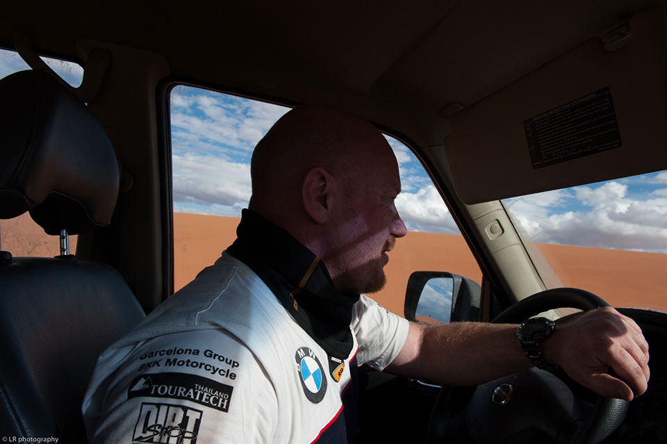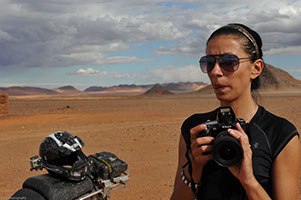 C'est la plus jeune d'entre nous. Discrète, réfléchie et toujours de bonne humeur, elle est notre rayon de soleil quotidien. Nous avons tous été très surpris de voir avec quelle aisance elle s'est acclimatée durant ce voyage, et comment elle a su se débrouiller en plein désert...un vrai co-pilote! Cuisine en plein désert, installation des campements, navigation GPS, bref, elle a remonté ses manches, et nous on est resté sur le cul.