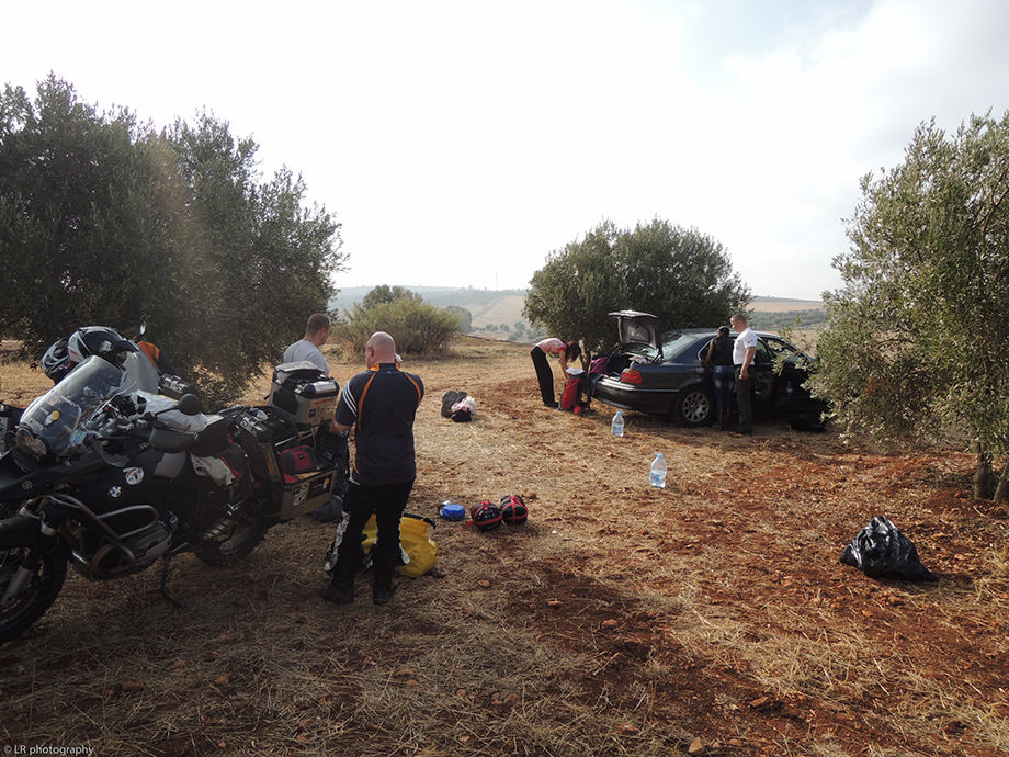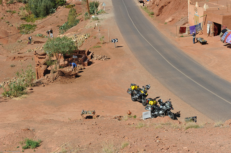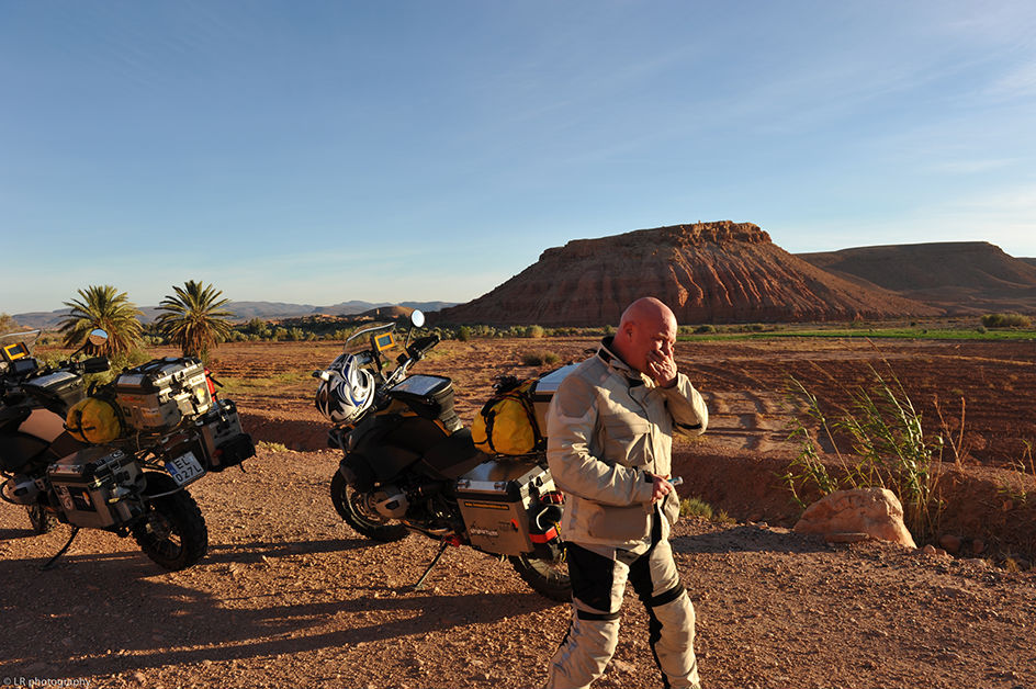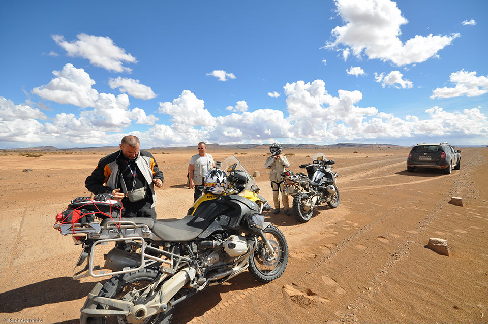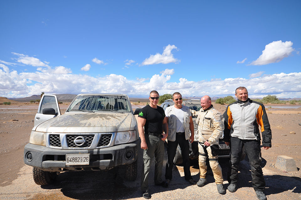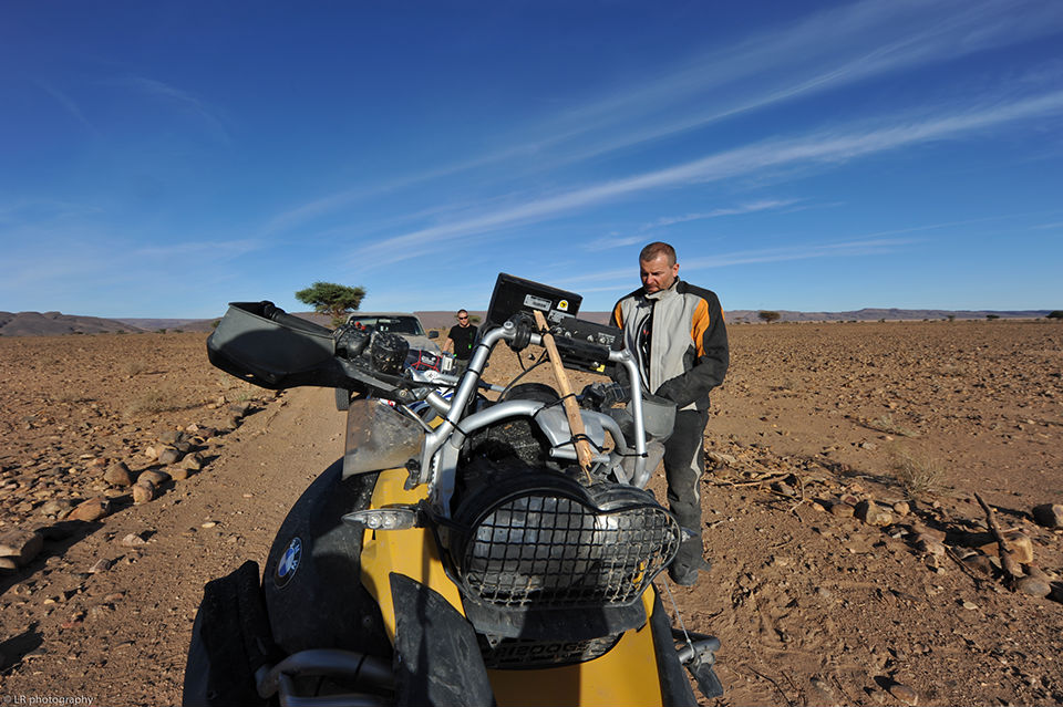 Pour la traversée de l’Europe, de la Pologne jusqu’au sud de la France, nous avons une voiture et nos deux motos (cette fois-ci deux BMW identiques). C’est à partir du Maroc que nous laissons la voiture chez des amis et prenons deux jeeps. Il vaut mieux être bien suspendu ici au Maroc dès que l’on sort des sentiers battus et des axes routiers principaux.