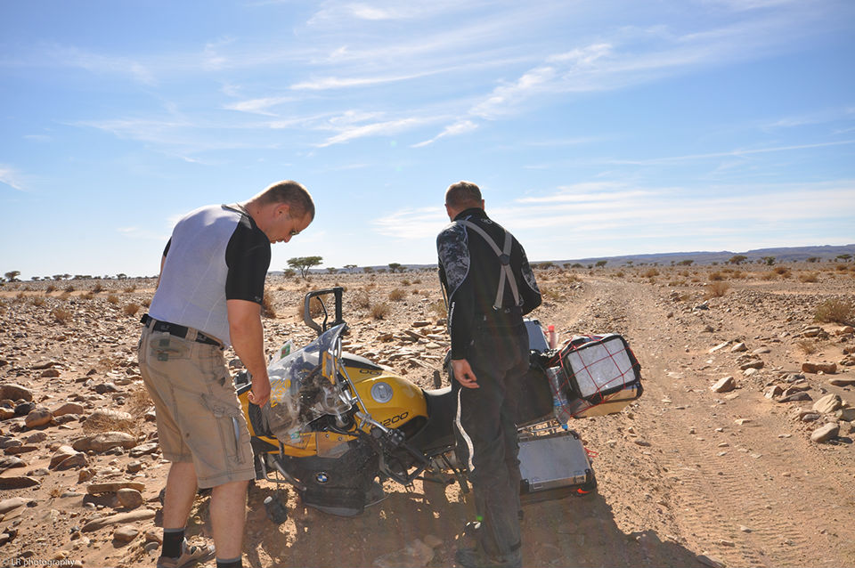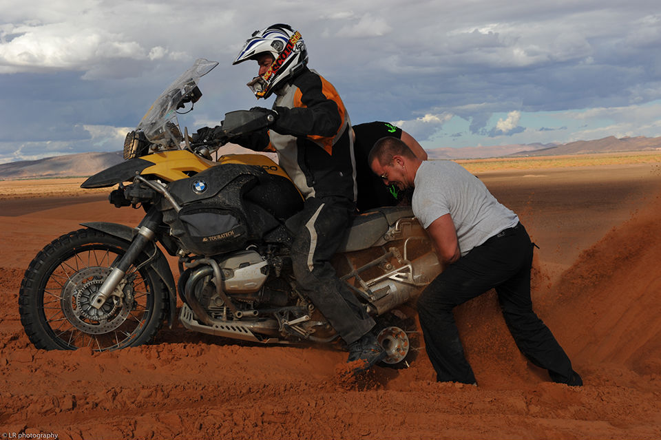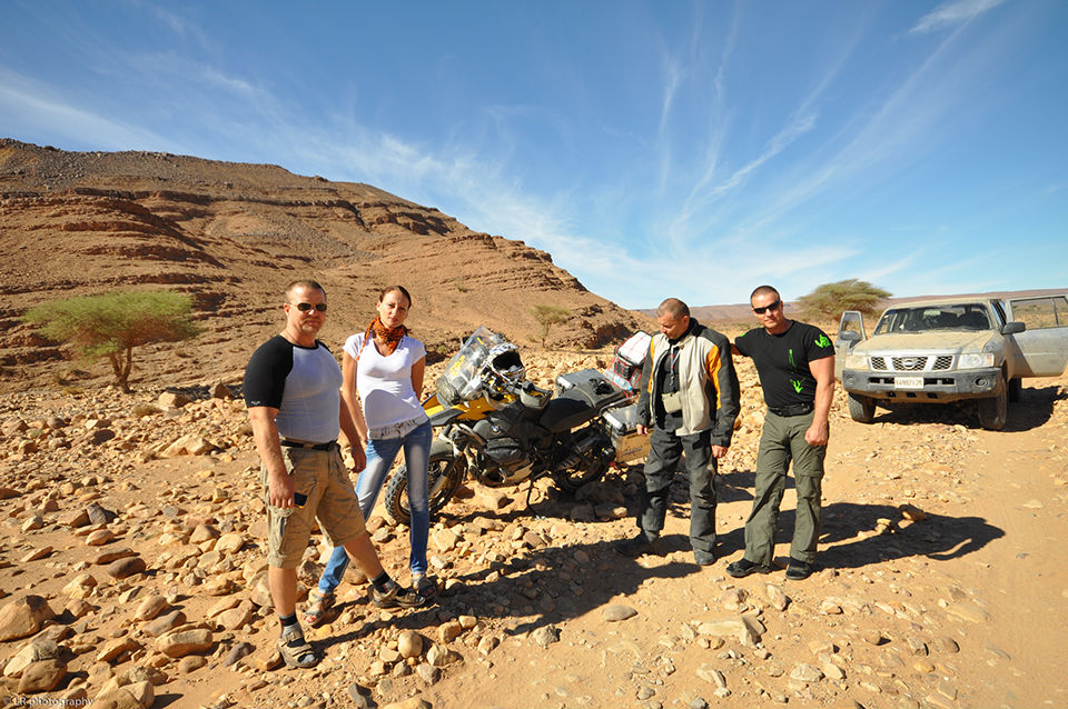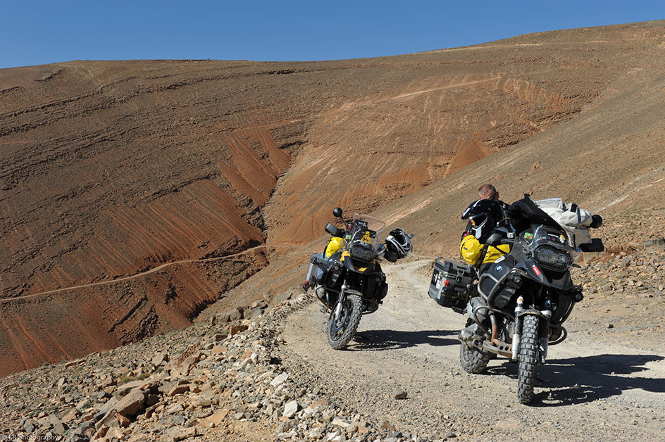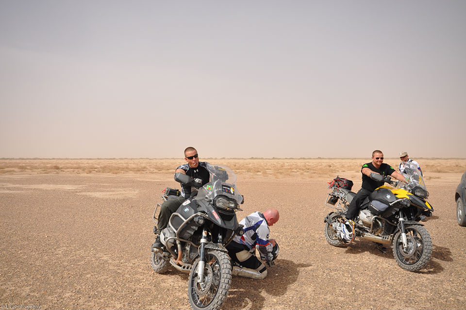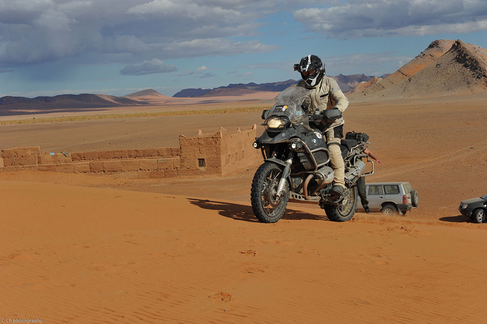 Pour la traversée de l’Europe, de la Pologne jusqu’au sud de la France, nous avons une voiture et nos deux motos (cette fois-ci deux BMW identiques). C’est à partir du Maroc que nous laissons la voiture chez des amis et prenons deux jeeps. Il vaut mieux être bien suspendu ici au Maroc dès que l’on sort des sentiers battus et des axes routiers principaux.
