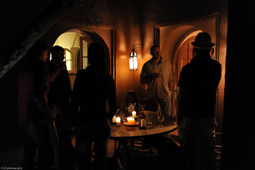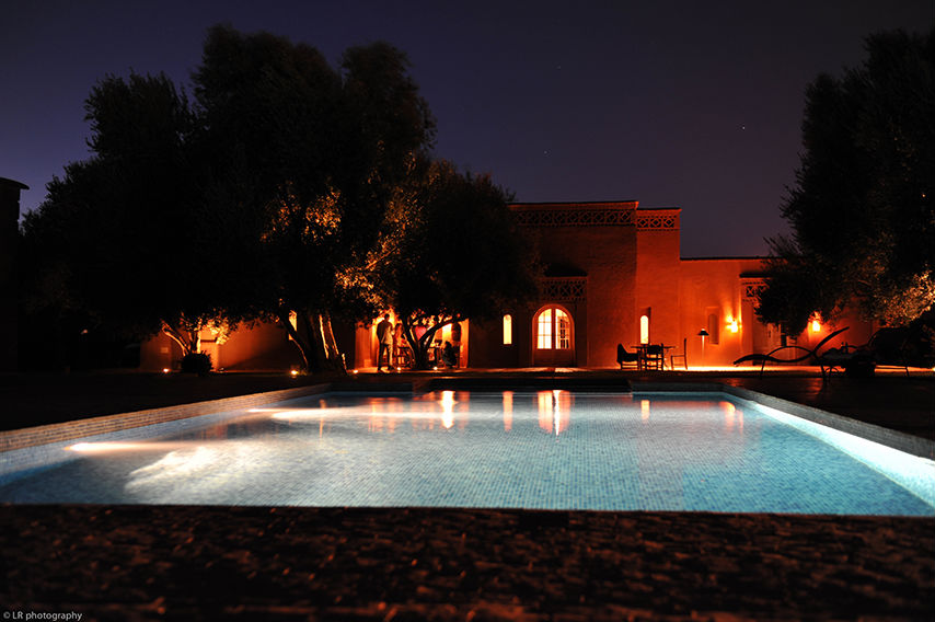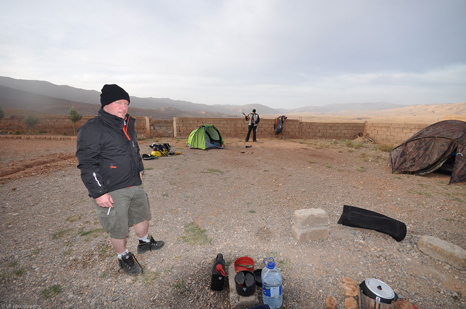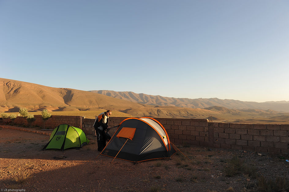 Après plusieurs heures de piste, nous retrouvons le bitume et nous nous dirigeons maintenant vers Todra, mais le soleil est déjà bas et il va faire nuit d'un moment à l'autre. Nous décidons de planter les tentes dans une propriété qui semble abandonnée, à l'abri du vent.