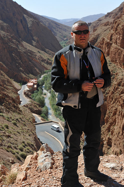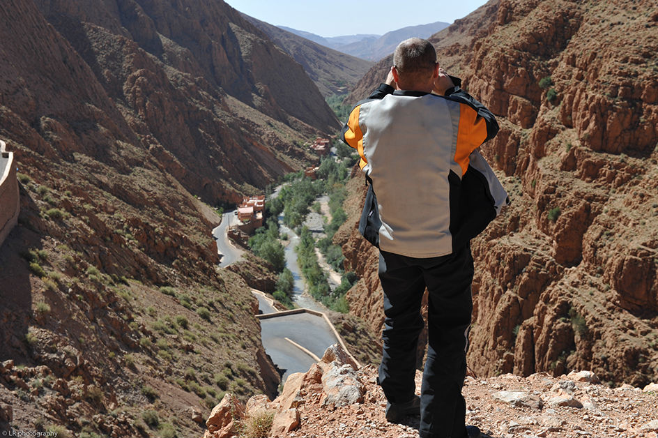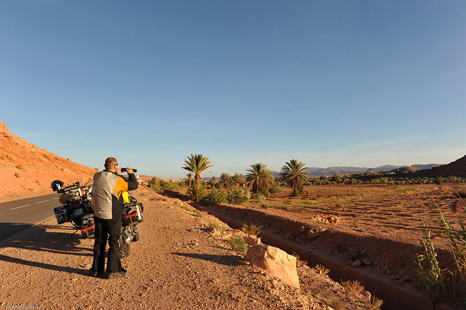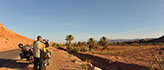 Au départ de Marrakech, aucun d'entre nous ne s'attendait à voir changer le panorama et le climat aussi rapidement. Le premier passage de l'Atlas se fait par la route principale, on profite des virages, des enfilades et du panorama, et arrivé de l'autre côté c'est de suite le désert qui nous accueil. Les couleurs..et cette chaleur...ça y est, le Sahara n'est plus très loin. On continue à rouler jusqu'à Ouarzazate où on passera la nuit.