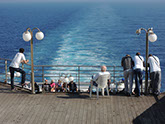 Alors quoi faire en attendant Tanger ...boire un p'tit coup pour fêter l'événement, faire la sieste et patienter... Et c'est ce qu'on fait dès les toutes premières heures sur mer, ...on trinque à notre santé et à la santé de tous ceux qui n'ont pas eu la chance de nous accompagner et on passe la journée suivante à faire bronzette sur le pont arrière du ferry.