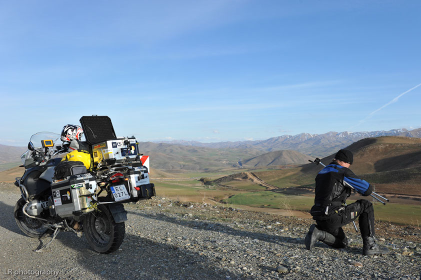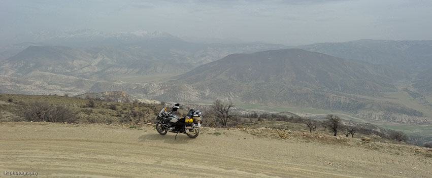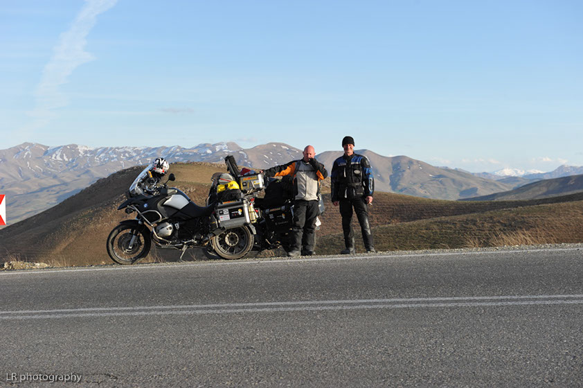 Parti le matin de Van, une petite ville à l'extrème Est de la Turquie, pour une étape d'environ 250km qui n'est pas de plus plaisante. Nous rencontrons le vent, la pluie et la neige au sommet du dernier col turc, à plus de 2700m. Les températures y sont glaciales et le paysage devient, au fur et à mesure de notre avancée de plus en plus aride et sombre.