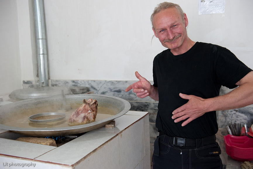 Au poste frontière, nous devons donc passer la nuit sur place et patienter au lendemain. Cela nous permettra de faire connaissance avec un très sympathique petit restaurateur local qui nous concoctera une omelette comme on en a pas mangé depuis bien longtemps. Il avait aussi au menu la fameuse et très traditionnelle soupe à la tête de mouton, mais bon... on s'est dit que ce sera pour une autre fois, surtout que nous sommes certain d'y avoir déjà goûté, sans le savoir et à notre détriment, plus tôt en Iran. Et cette soupe là c'est pô du gâteau à avaler...