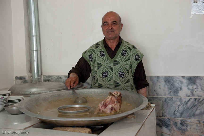 Sur chaque rives, sous les arches du Pont Si-O-Seh se trouvent des salons de thé et une sorte de cantine ou l'on distribue une soupe au pâtes, avec un semblant de basilic. Ca semble succulent. On se lance...2 soupes, le serveur y rajoute une grosse cuillère de Kashk. Ca ressemble à ce bon yogourt, mais c'est en fait du petit lait épais de brebis. Bref, il faut s'accrocher pour engloutir, sans déglutir :-$