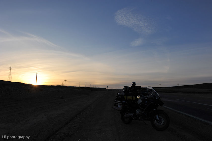 Peut avant d'arriver à Sanandag, nous faisons une pause photo et cigarettes, au bord de la route, il fait déjà bien sombre.