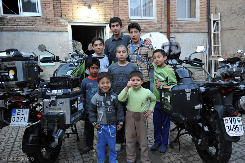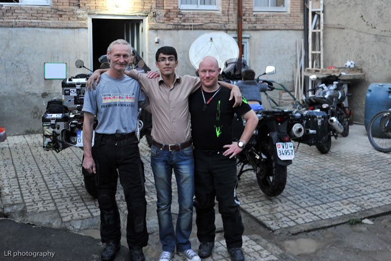Hossein est un passionnée de moto, très aimable et accueillant. Il nous sera d'une grande aide pour trouver un casque de remplacement pour Christian. Nous passons la journée avec lui, nous en apprendrons ainsi un peu plus sur les coutumes et la culture locale. Le soir nous sommes invités par sa famille a partager un repas traditionnel de l'Azerbaïdjan. Il faut dire que les habitants de cette région se considèrent Azeris.