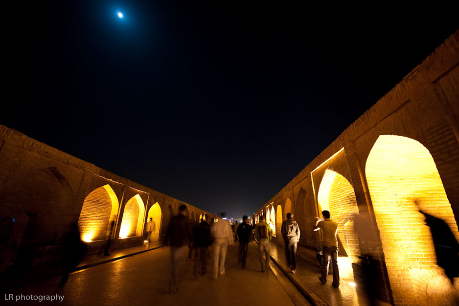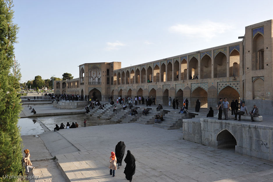Nous trottons jusqu'au Pont de Khaju puis jusqu'au Pont de Si-O-Seh, magnifiques ouvrages datant du début du XVII siècle et reliant tous deux les berges de la rivière Zayandeh.