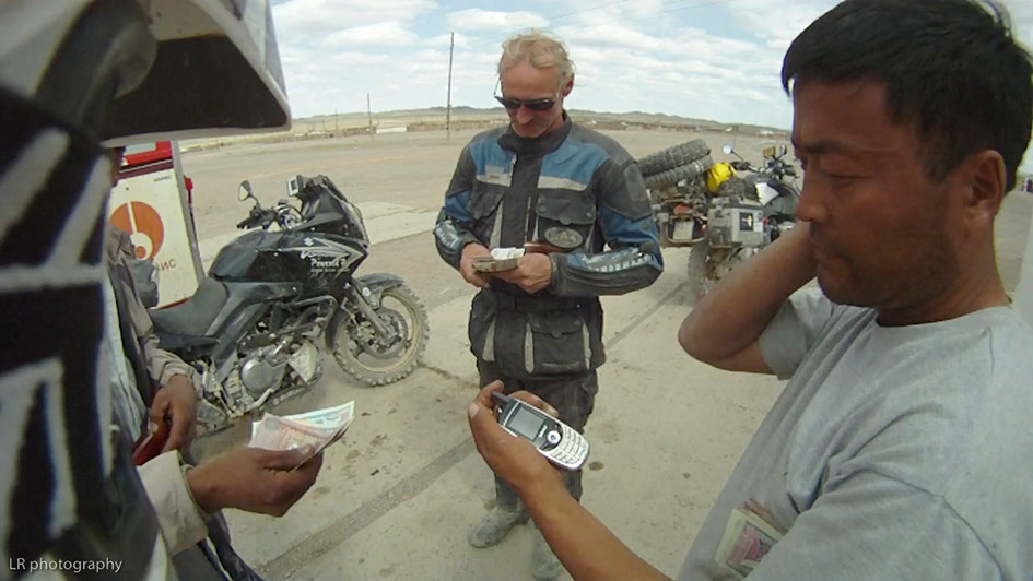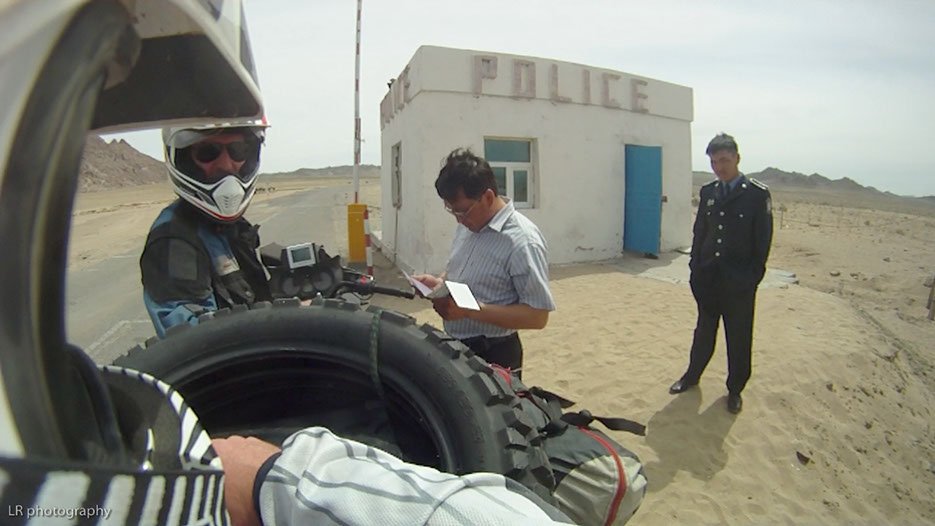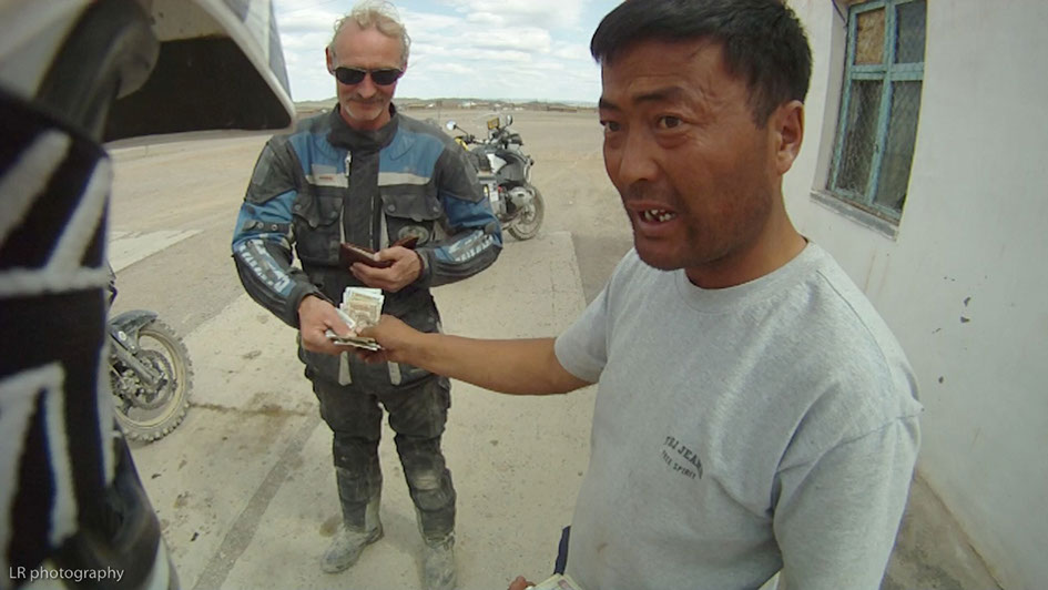 Un peu plus loin, nous arrivons au poste frontière mongole. Premier barrage, un papier à remplir et une taxe à payer pour la désinfection de nos motos... c'est vrai quelles ne sont pas bien propres, mais de là à devoir les désinfectés... surtout au vu de ce qui les attend un peu plus loin!!! Bref, nous payons cette taxe mais nous ne verrons jamais le poste de désinfection...