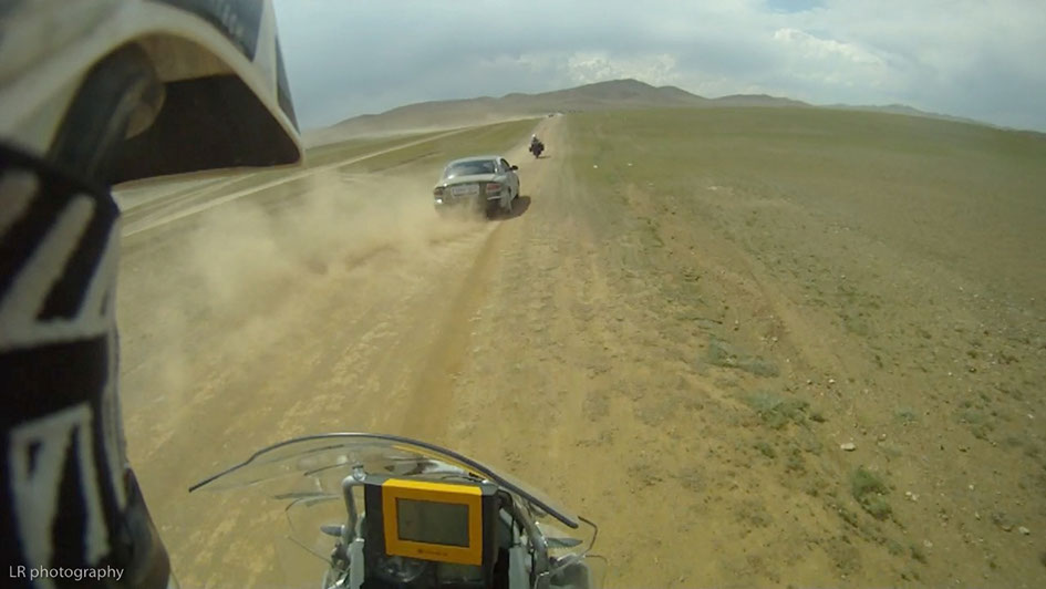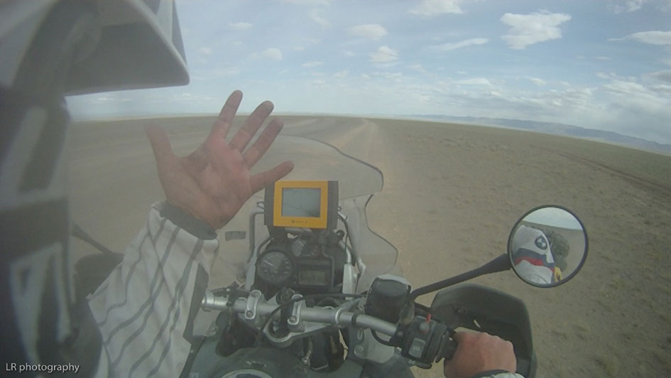 S'éloigner le moins possible de la ligne à suivre théorique est une sécurité, car on est certain de l'endroit où aboutit notre trace (à la destination choisie), alors que si nous empruntons une voie différente, plus courte ou de meilleure qualité soit-elle, nous perdons notre navigation et par la même toutes références de notre position et du cap à suivre, d'autant plus que les panneaux indicateur en Mongolie sont plutôt rares, même inexistants par ici.
