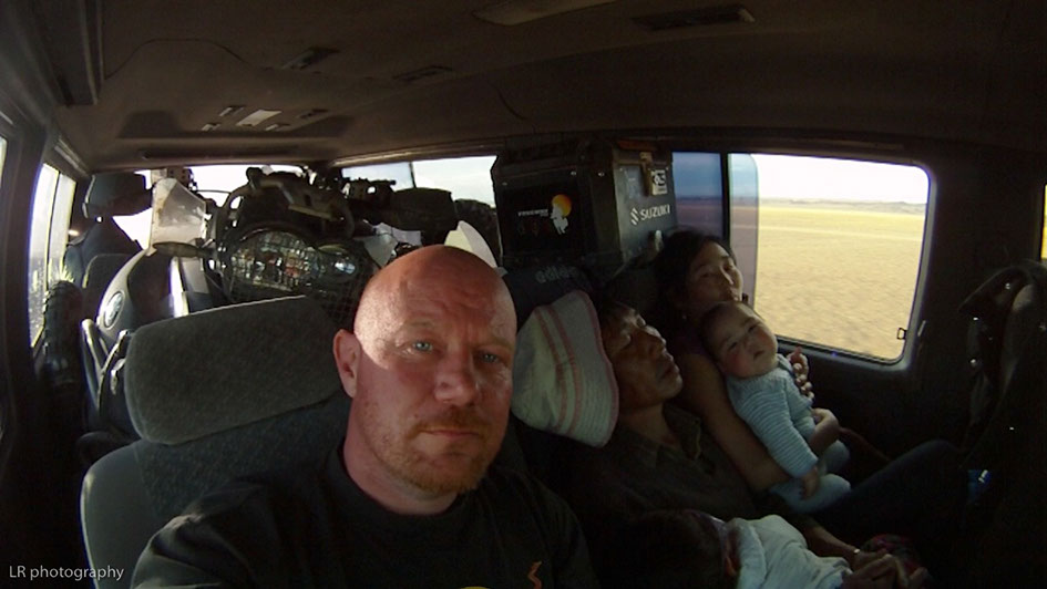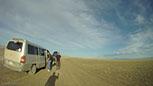 en plein désert de Gobi, le pont arrière du van casse...trop de poids..