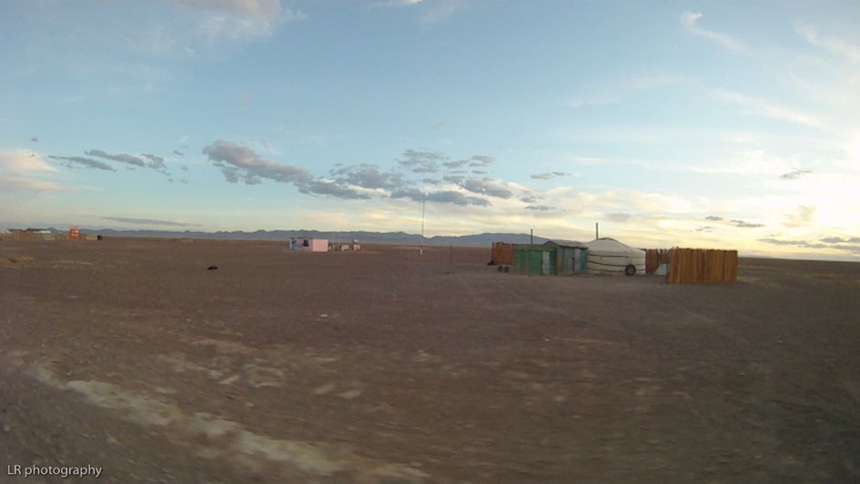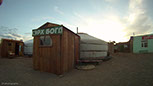 On roulera encore jusqu'au coucher de soleil, jusqu'à un lieu-dit où les yourtes sont toutes aménagées en restaurants de fortune (resto-route mongole). L'unique endroit où se restaurer à des centaines de kilomètres à la ronde.