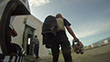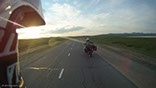 Fatigue et vitesse ne font pas bon ménage, et Christian en fait les frais lorsqu'il veut changer de trace. La roue avant de la Suz' ripe sur le gravier et c'est la chute, lourde, à plus de 60km/h. Il se relève avec juste quelques égratignures aux mains (rouler sans gants c'est vraiment pas bon..) mais rien de plus, rien de grave!