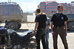 Police check-point à la sortie de la ville, et taxe pour les quelques centaines de mètres de route asphaltée..