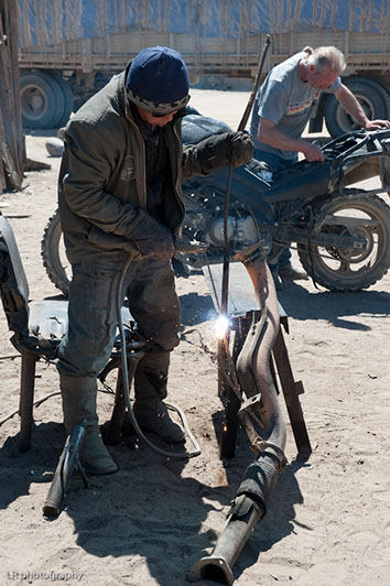 Avec l'aide de Gankhuyag, nous partons à la recherche qu'un garage pour ma BM, mais on se rend très vite compte que c'est peine perdue. Ils n'ont que de toutes petites suspensions, produites en Chine ou en Russie, pour des vieilles 125cm3.