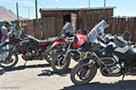 Nous faisons une première halte après une bonne heure et demi de route. S'hydrater et se relaxer le dos et les avants-bras. Il fait chaud et le matos autant que nos articulations commencent à souffrir. Pour preuve l'état de nos pneumatiques arrières, des crampons ou morceaux de crampons commencent à manquer, littéralement découpés par la roche.
