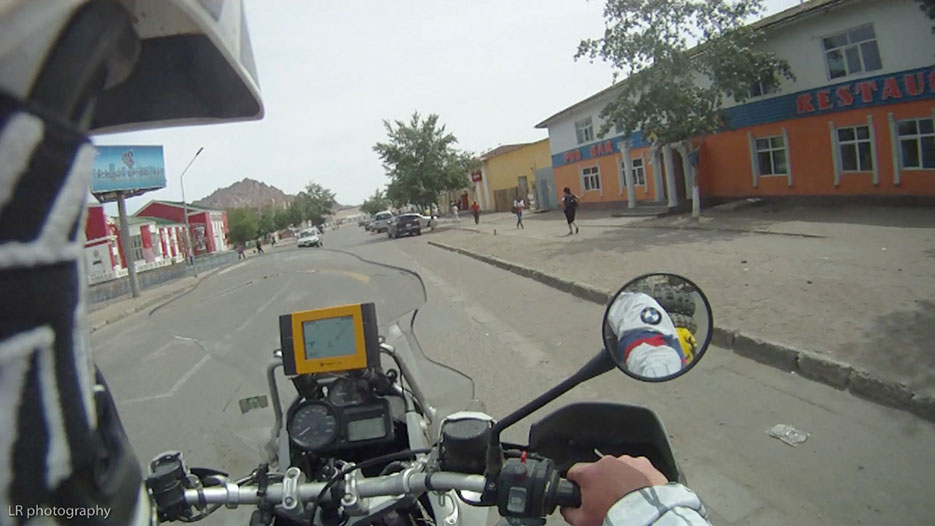 Le lendemain matin, grâce mat' et far'niente. Nos deux confrères ont décidé de rester à Khovd un jour de plus, alors on s'en va tous ensemble à la recherche d'un mécano pour redresser et consolider les caisses alu de la Suz', puis à la recherche d'un DAB (pas évident en Mongolie) et pour finir on essaie les spécialités culinaires locales dans un petit resto du coin...pas concluant, on finira par prendre des spagouzes bolo..ça sa passe toujours ;-)
