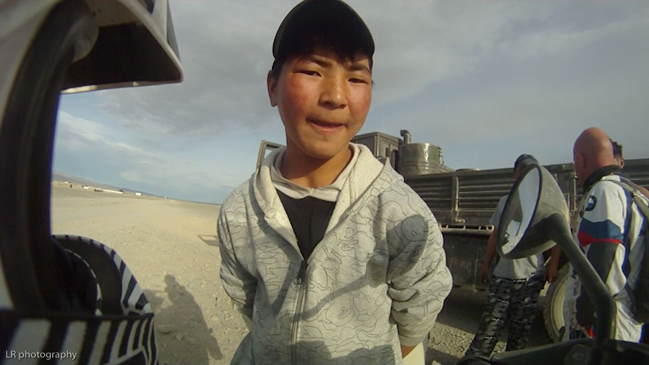 On profite encore du temps libre en fin d'après-midi pour quelques petites bricoles sur nos motos, et voilà que deux gamins, deux petites crapules, venus plus tôt voir nos machines et jouer avec notre matériel, sont repartis avec nos gants. On fait le tours du quartier, on va jeter un oeil dans l'école la plus proche, rien. Les gosses, et nos gants avec, sont introuvables. Il nous faudra donc traverser la Mongolie sans gants, rendant les éventuelles chutes dans la caillasse et le sable beaucoup plus délicates...méfiance...!