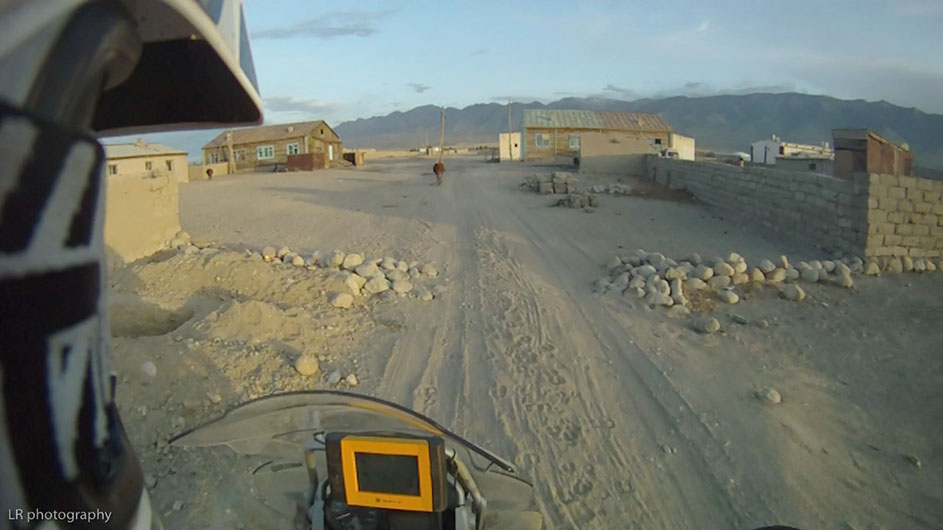 A la sortie de la ville, une belle piste file droit au Sud, et une large plaine caillouteuse part à l'Est. Notre Road Book nous indique de prendre à l'Est...ça ne sera pas la bonne décision (on le saura plus tard), mais sur les cartes soviétiques datant des années 60-70 et nous servant de base pour établir le parcours et programmer le RB, la belle piste du Sud n'y figure pas encore.