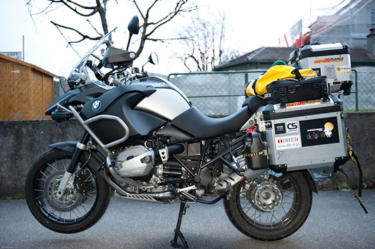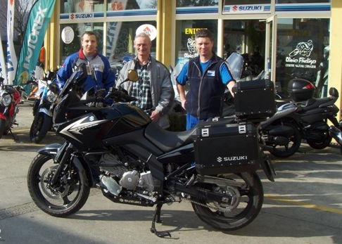 Voilà... une Suzuki DL650 v-storm et une BMW R1200GS Adventure, toutes deux flambant neuves. Ces deux là, pas question de les brader une fois la route terminée, on les ramène en Europe :-)