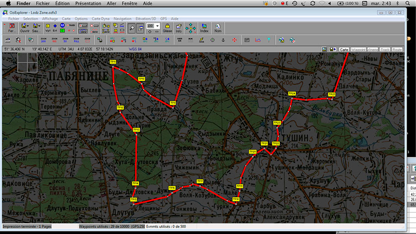 Un jeu d'enfant. En ouvrant nos cartes topo (géantes) avec le programme "Ozi Explorer", nous avons à l'écran une "map" calibrée.