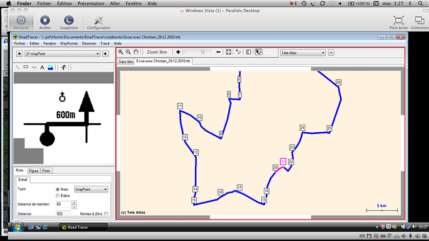 Le roadbook étant bouclé, il suffit de connecter le Tripy au laptop, exporter le fichier roadbook (*.trb) dans le GPS et nous sommes prêts à continuer notre route...