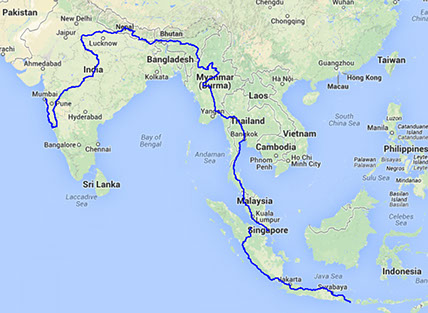 Notre « RoadBook » est établi sur une base de 150’000 km à parcourir en moto, des liaisons par avions pour traverser les océans et quelques transports par bateau.