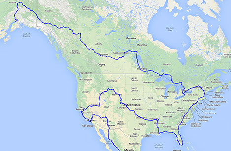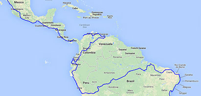 Alaska USA, Canada, USA, Mexique, Guatemala, Salvador, Honduras, Nicaragua, Costa Rica, Panama, Colombie, Venezuela, Ecuador, Pérou, Brésil, Paraguay, Bolivie, Chili, Argentine.
