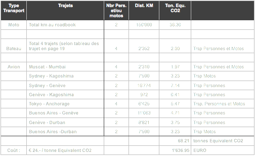 - 73'000 km de transport des personnes et des motos, pour assurer les liaisons entre les étapes