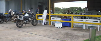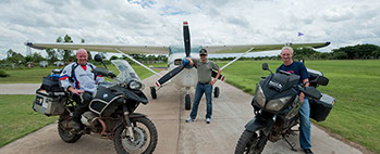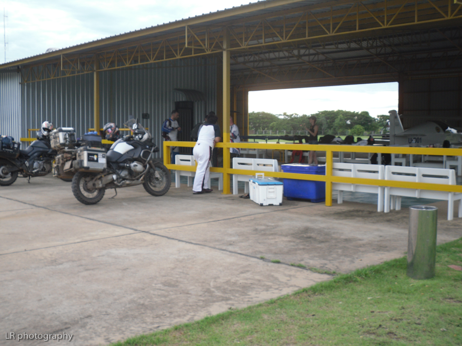 Seul Graeme, l'instructeur para du lieu, est au courant de notre venue, les autres ne savent rien, alors c'est un peu incrédules qu'ils nous voient débarquer...depuis la Suisse..à moto!!!